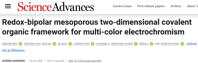 | 前沿探索 | 我室王宏志教授/李克睿研究员团队在高稳定电致变色双极性共价有机框架研究方面取得新进展 |