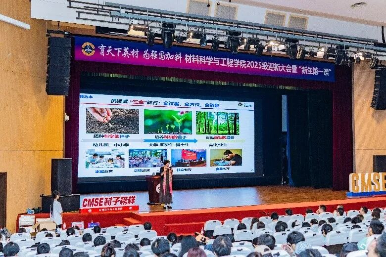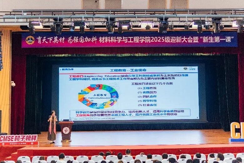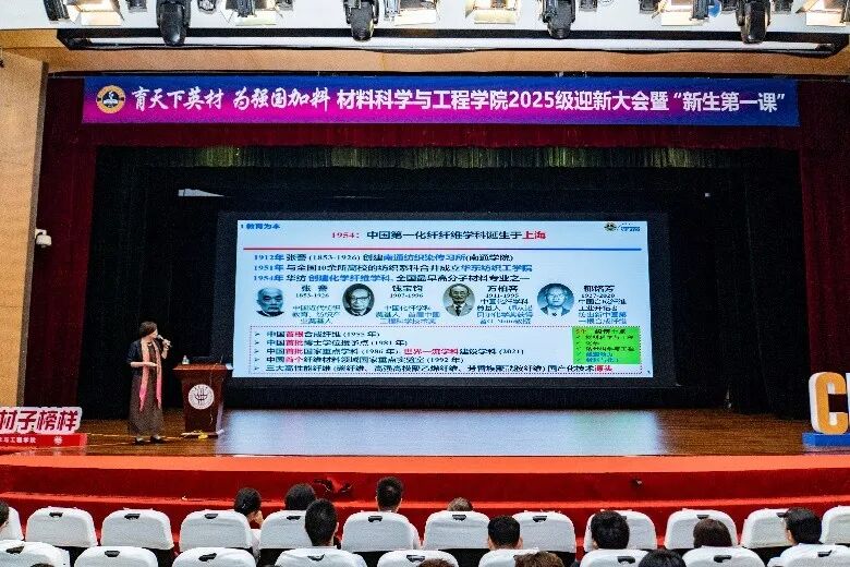 恰逢首个“全国科普月”之际,为了深入宣传贯彻习近平总书记关于科技创新、科学普及和科学素质建设的重要论述, 推动《科普法》深入实施, 围绕提升国家创新体系整体效能, 解读国家重大科技政策和战略部署, 引领科技工作者和社会各界积极支持和投身科技强国建设,2025年9月28日,我室主任朱美芳教授给2025级全体本硕博新生上了“生动一课”:“以生为本 创新为魂”——东华大学材料学科教育科技人才一体化实践,引领学生们积极支持和投身科技强国建设。
