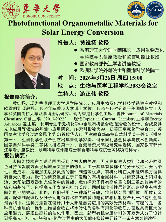 黄维扬--香港理工大学--Photofunctional Organometallic Materials for Solar Energy Conversion